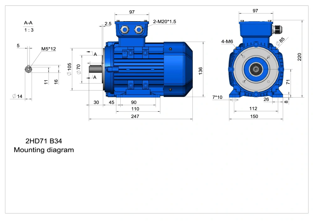 Elektromotor 2HD712-2 0,55kW, 2790ot.