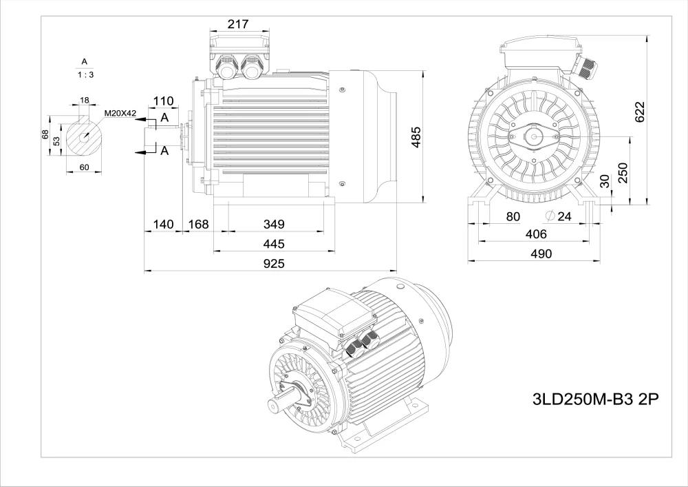 Elektromotor 3LD250M-2 55kW, 2980ot.69 193 Kč/ ks57 184 Kč bez DPH
