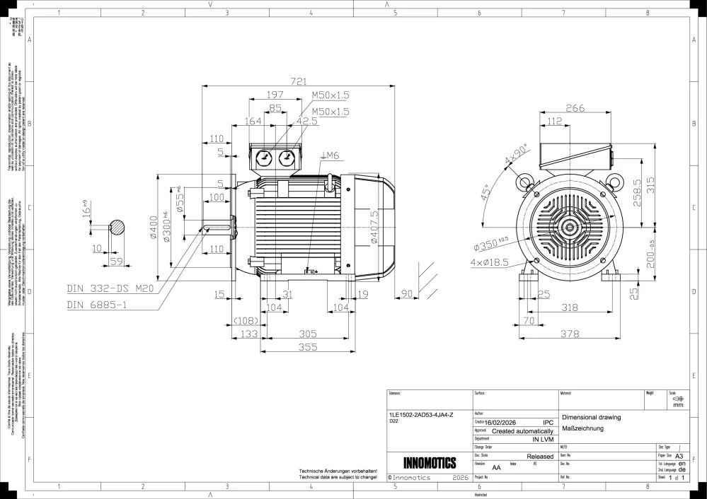 Elektromotor INNOMOTICS 15kW, 718ot., 1LE1502-2AD53-4JA4