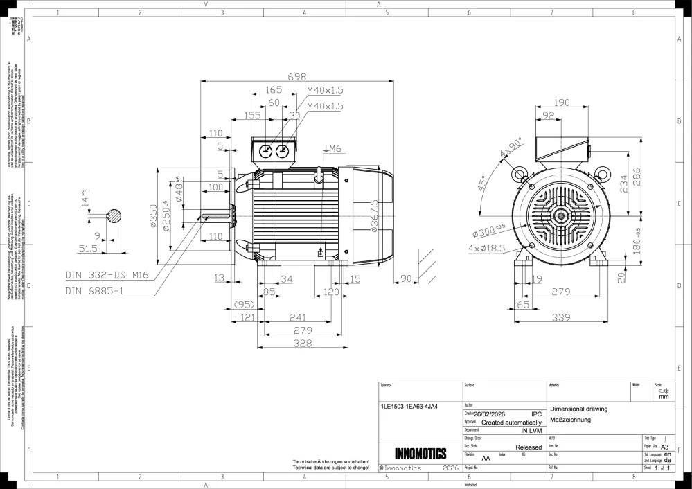 Elektromotor INNOMOTICS 30kW, 2950ot., 1LE1503-1EA63-4JA477 924 Kč/ ks64 400 Kč bez DPH