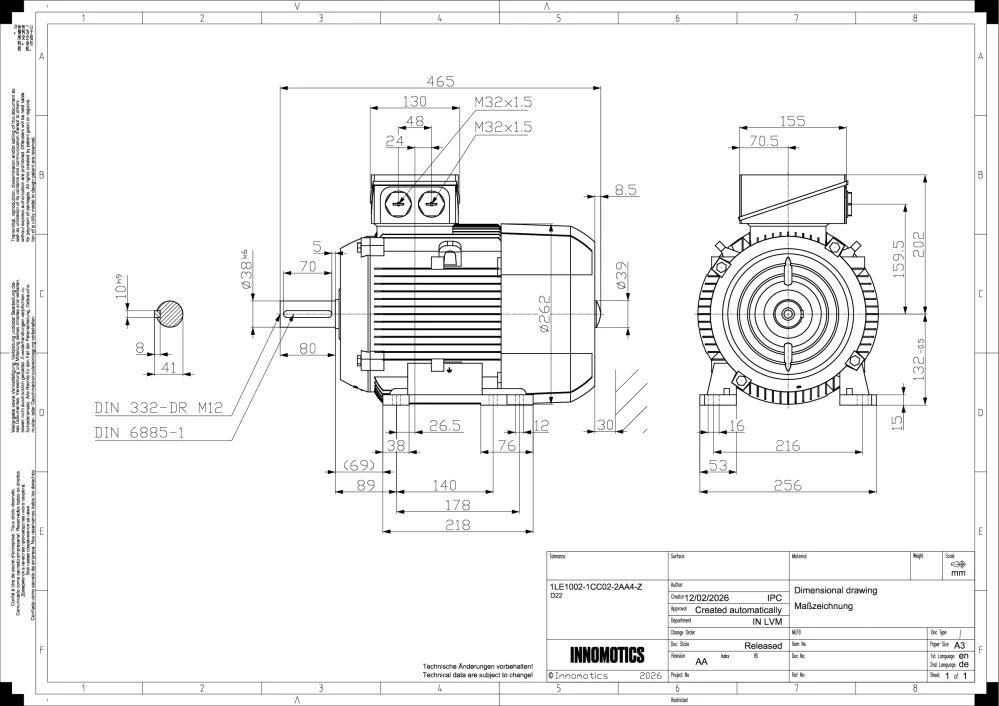Velikost (osová výška):    132   Výkon:    3 kW Otáčky:   955 min-1 Napětí:   230/400V, 50Hz Ložisko strana    D 6208 2ZC3 Ložisko strana ND 6208 2ZC3 Krytí:   IP55 Vyvážení motoru:   stupeň vibrací AStandardní nátěr:   odstín RAL 7030Váha:   34kg OBVYKLE SKLADEM celý popis