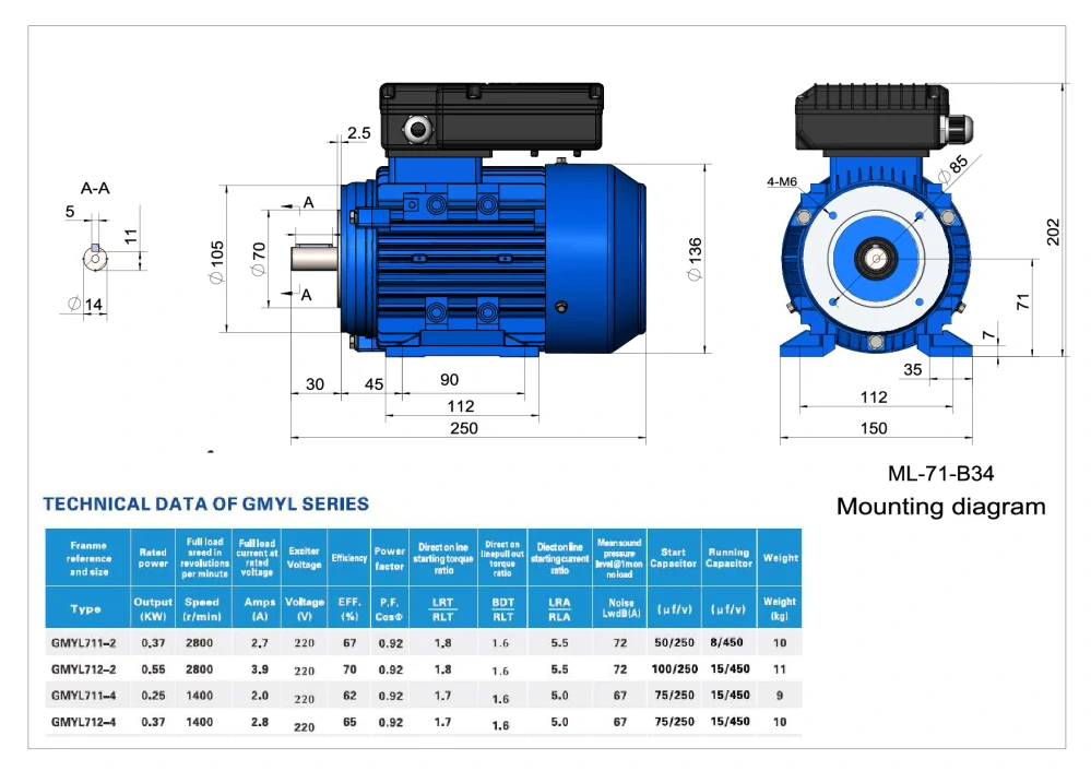 Elektromotor ML711-2 0,37kW, 2760ot.1 774 Kč/ ks1 466 Kč bez DPH