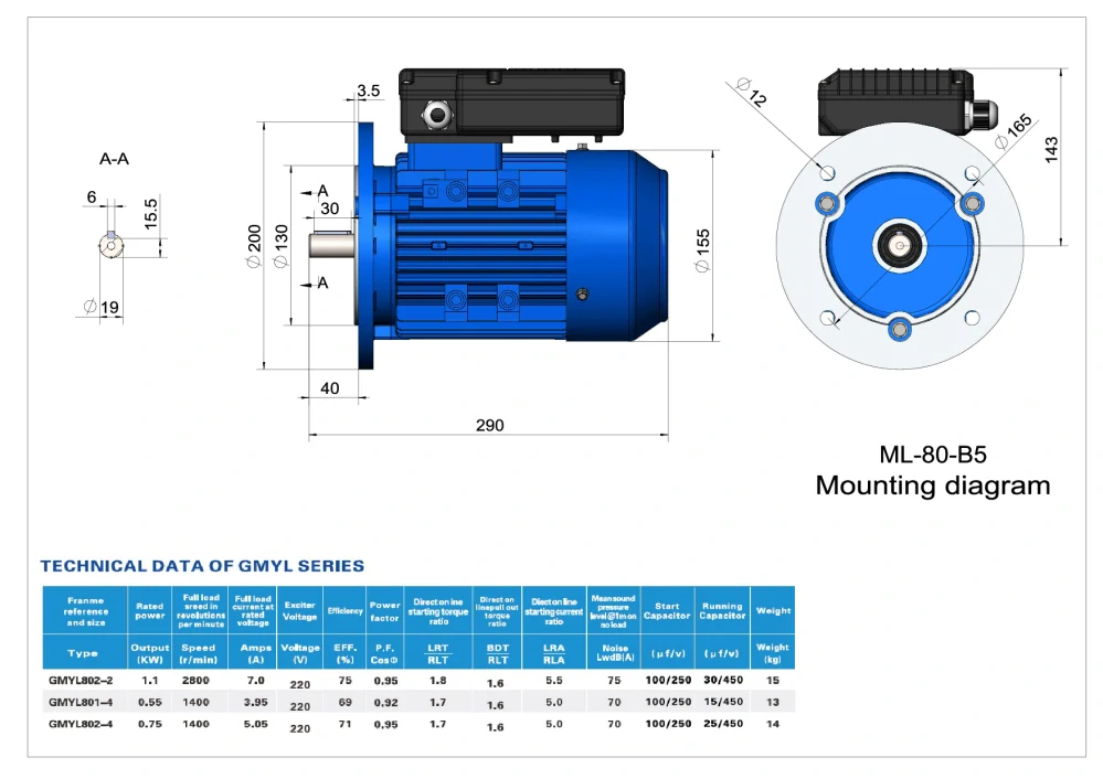 • Elektromotor ML801-4   0,55kW, 1390ot.